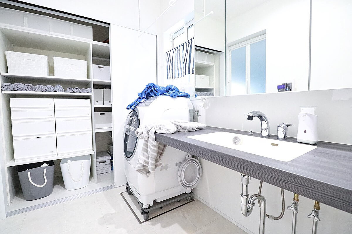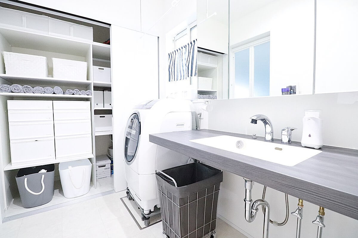 使用しているランドリーストレージは、深さもあるため脱いだ物が外からは見えずに生活感を隠す事ができます。
