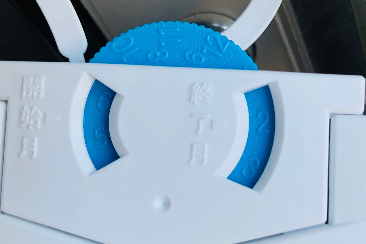 今回購入したのは、260日間効き目が持続するタイプで、設置時期のダイヤルを回すと忘れがちな終了時期もわかる優れものです(使用する場所によって効果効能は変わってきます)。