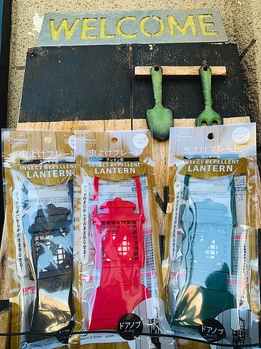 セリアで購入したランタン型「虫よけプレート」です。色はブラック、レッド、カーキの3種類です。