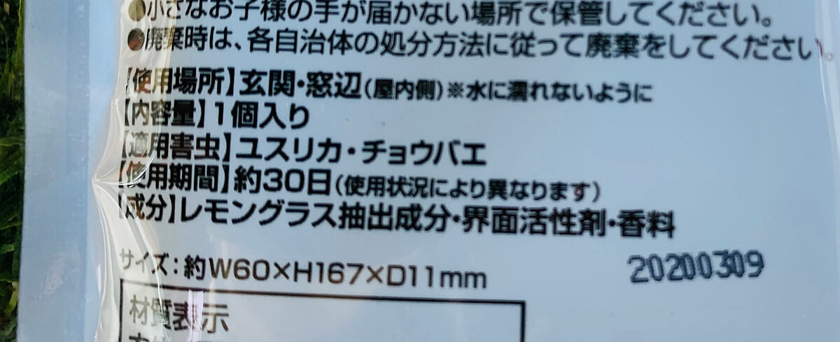 ただ、効き目が260日の「虫よけネット」と違い30日(使用状況によって効果や効き目が異なります)と短いので、価格はさておき、買い替える頻度が増えるのがデメリットです。