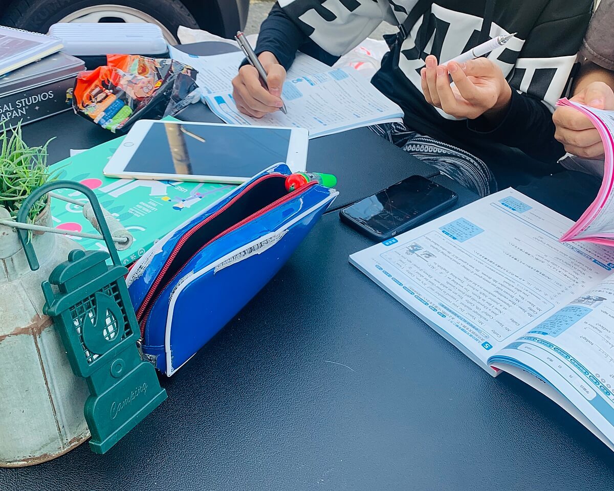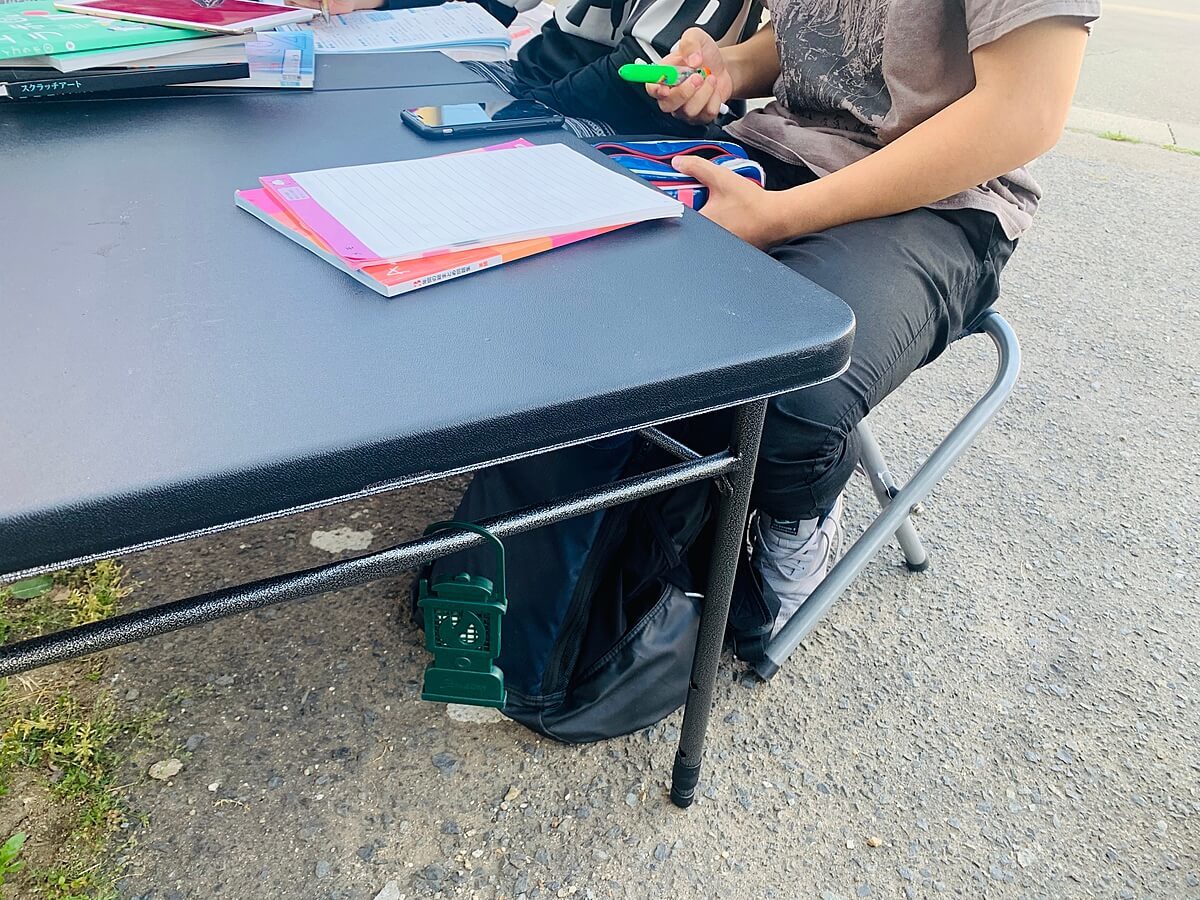 最近は、換気がいい室内より室外で宿題をする息子にバーベキュー用テーブルを出し、そのテーブルの脇にサッと虫よけプレートも下げてあげました。