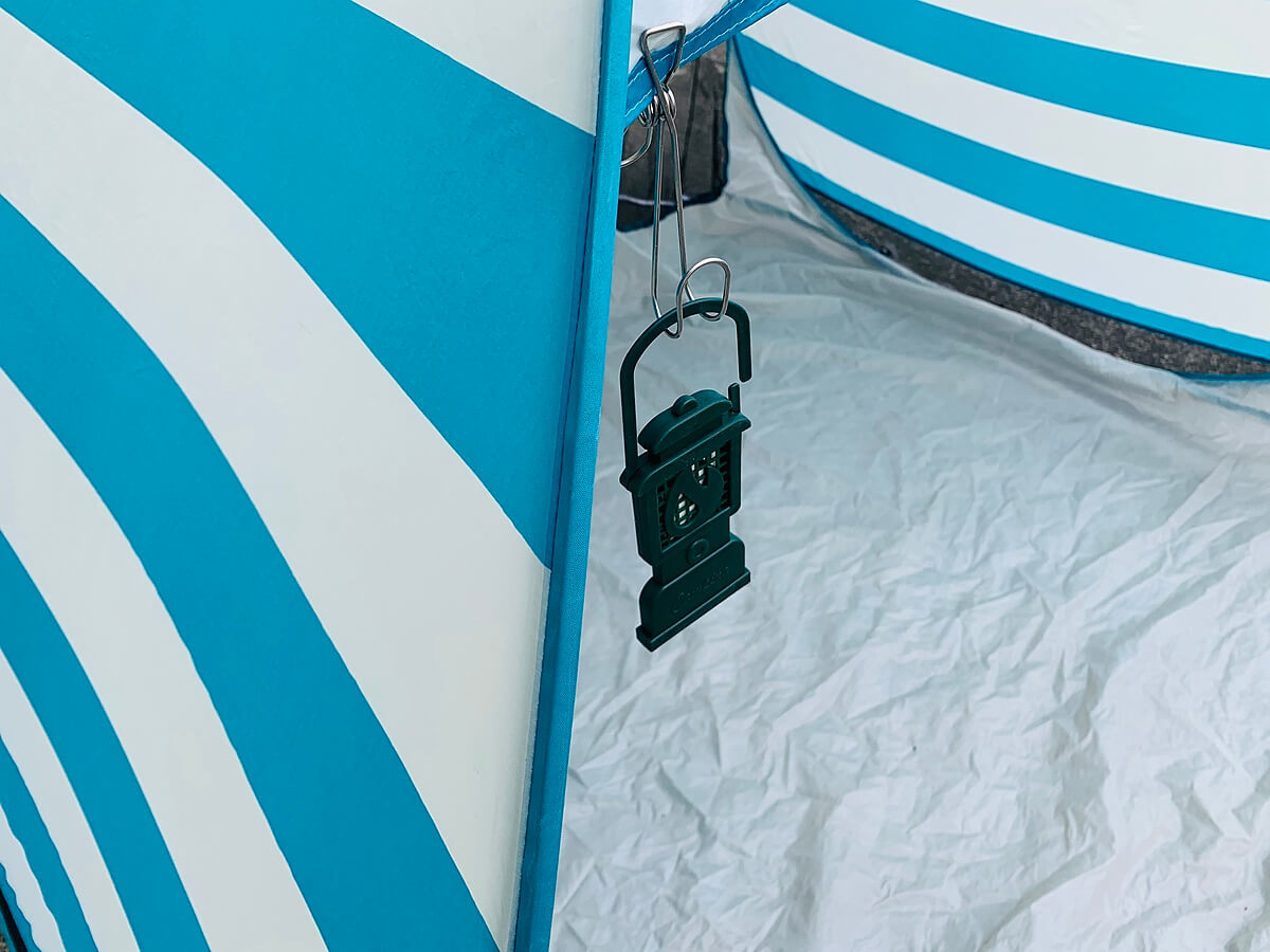 海やピクニックで使うサンシェードに取り付けてみました。殺虫成分は含まれておらず、ハーブのレモングラスの力で虫除けするので、電気や電池は使用せずに使用できます。