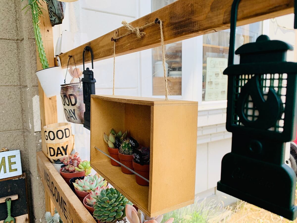 また、玄関の風除室に飾っている多肉植物の棚にぶら下げても「虫よけプレート」には見えず、むしろ飾っている方がその場所が可愛く見えます。