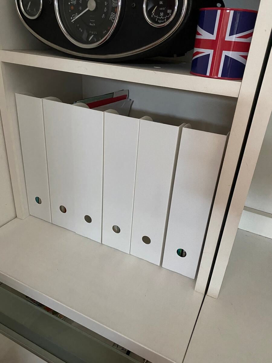 子どものノートなどの文具類を、ファイルスタンドに入れて整頓しています。