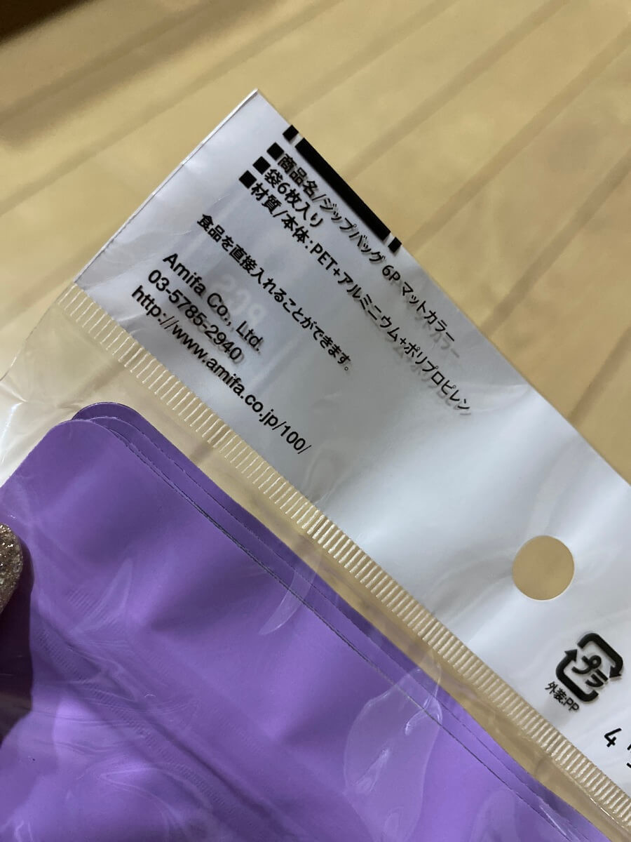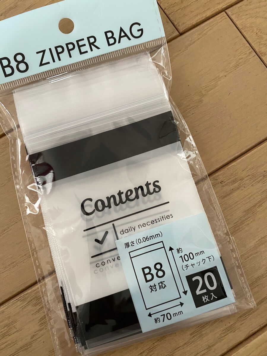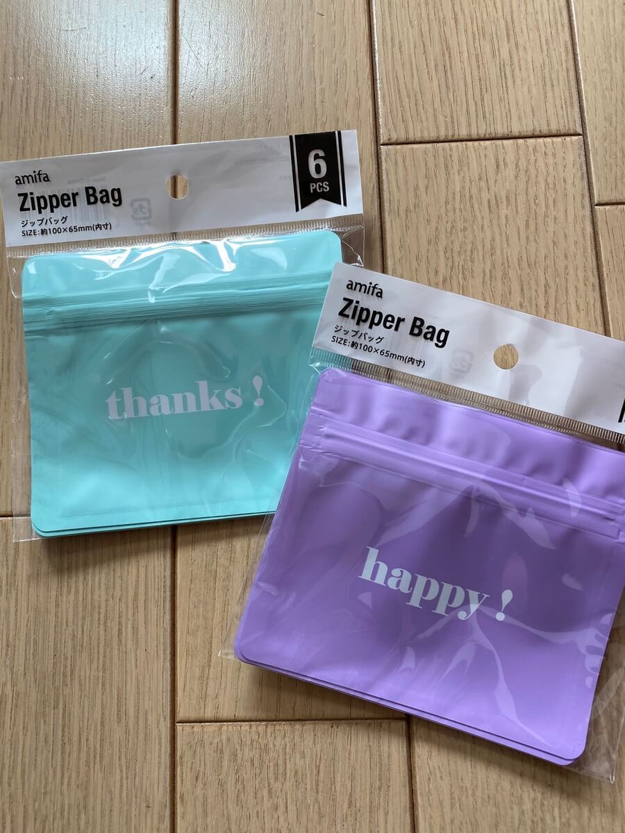 こちらもセリアで購入した、お気に入りのジッパーバッグ。