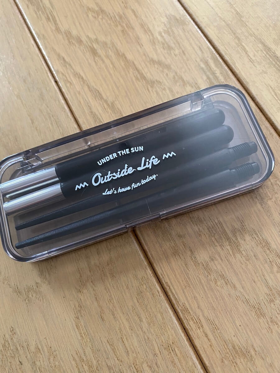 以前より、コンパクトになる箸セットが欲しかったのですが、100円ショップで売られていた商品は、あまりデザイン的に気に入ったものがなくて、いつもスルーしていました。