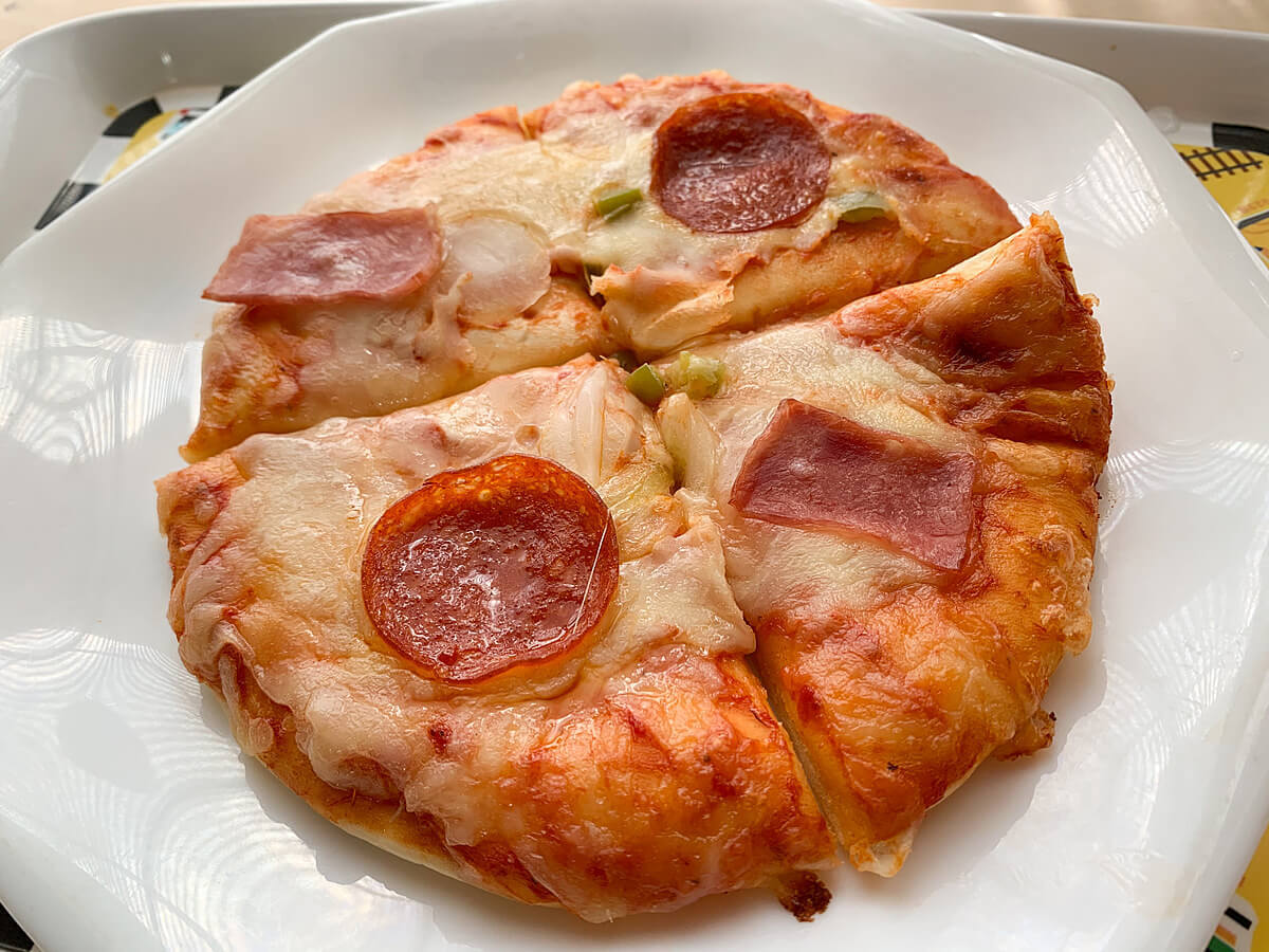 ピザだけはチーズが少し固まり始めていたので、オーブンで再度温め直しました。