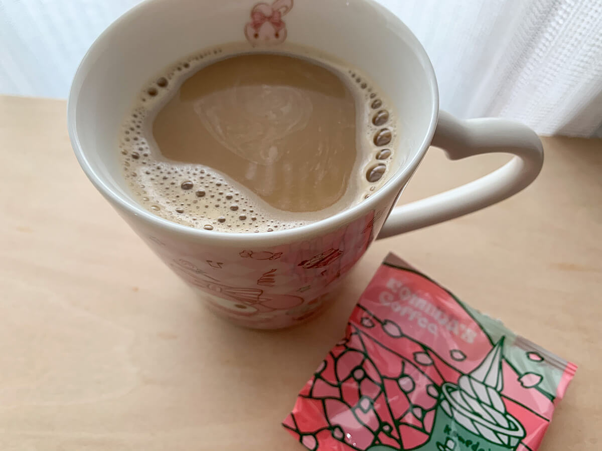 砂糖とミルク入りになっているので、やや甘めの味わいです。