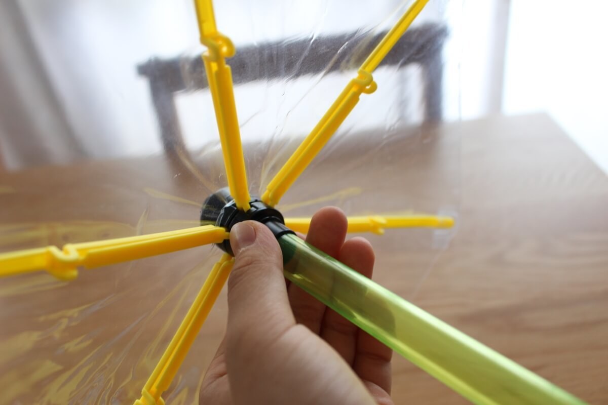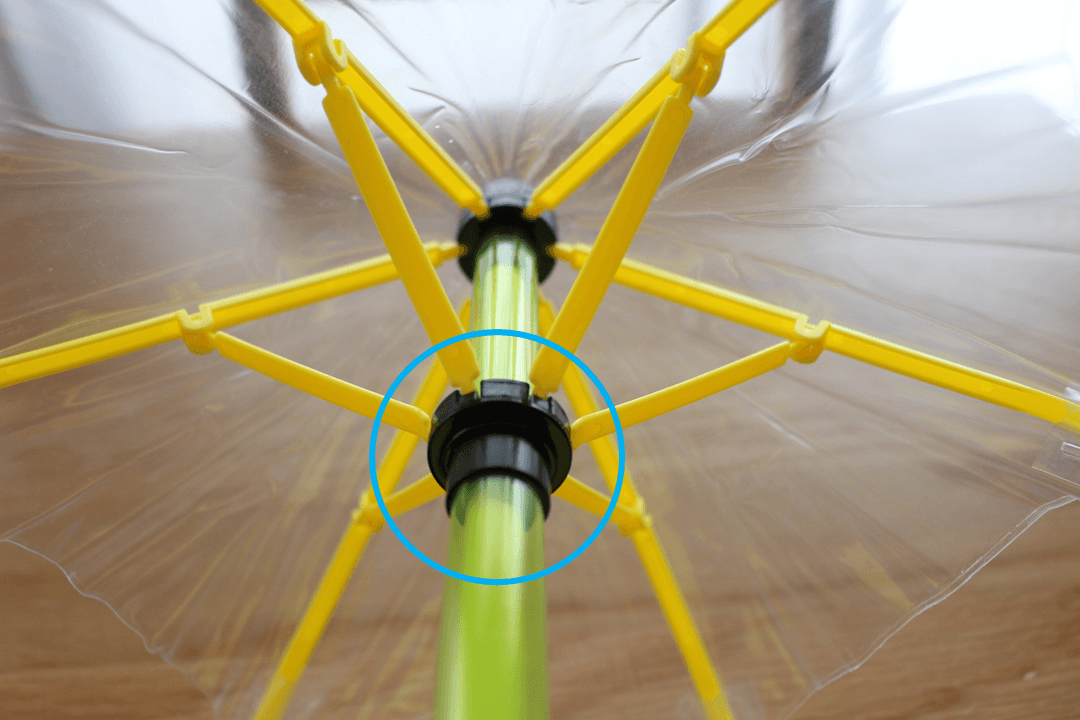 下ろくろを持って普段の傘と同じように開きます。