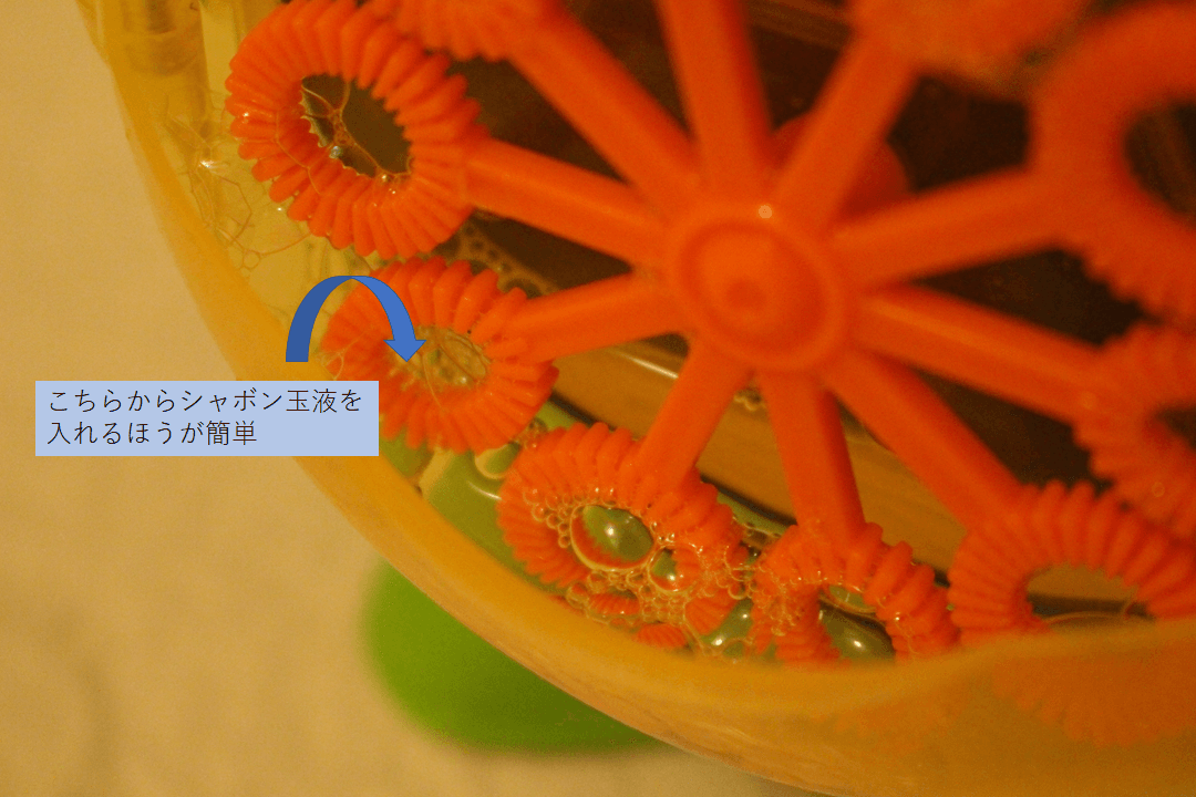 シャボン玉液はこちらから入れるようになっていますが、とても使いにくいです。