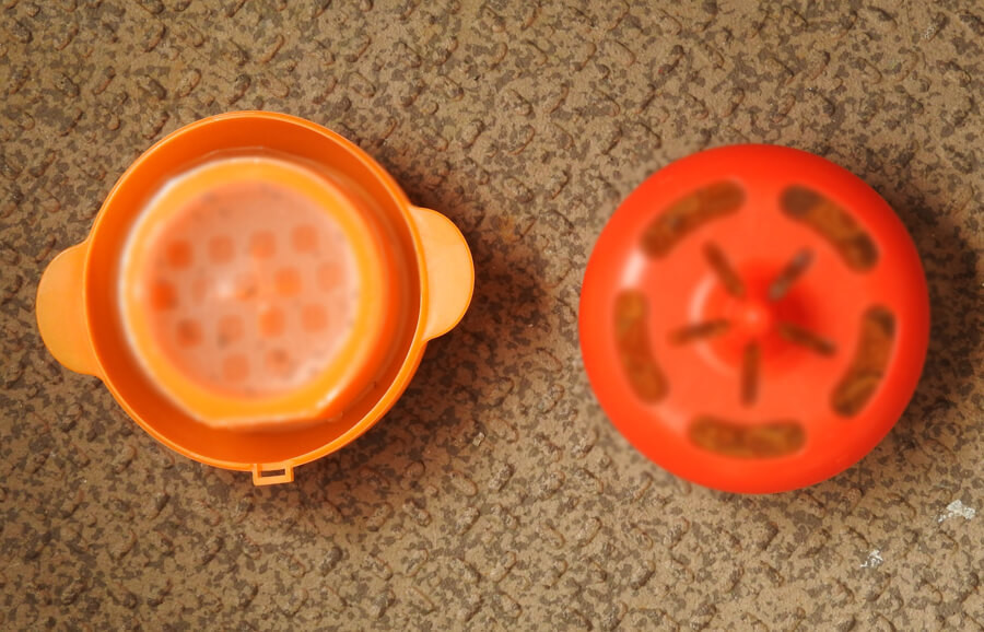 マツモトキヨシ「コバエ捕獲器COCOTTE」には取り外し可能なフタがついていますが、これはいらないかなと思いました。捨てる時に捕獲されたコバエをみずにすむ……という点においてはいいのかもしれませんが……。