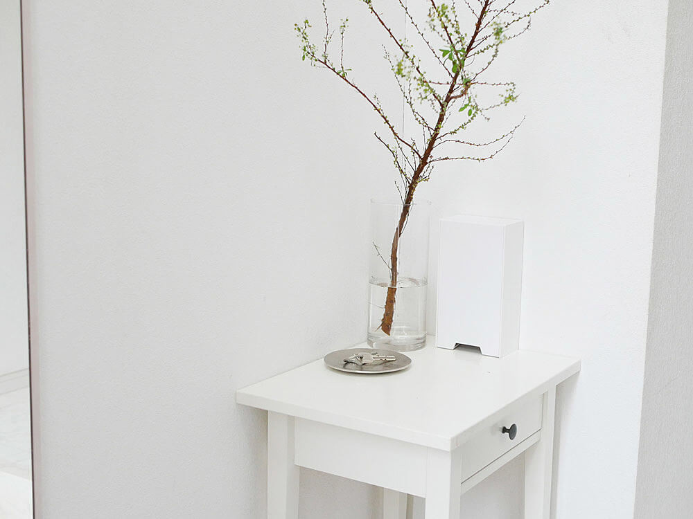 場所を取らないスリムでコンパクトなサイズなので、玄関の棚などに置いても目立たずに使えるのもポイント。