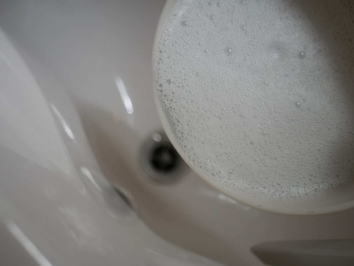 アメリカ製は界面活性剤が入っているので、オキシ漬けをする際、写真の様に泡がもこもこ~となります。