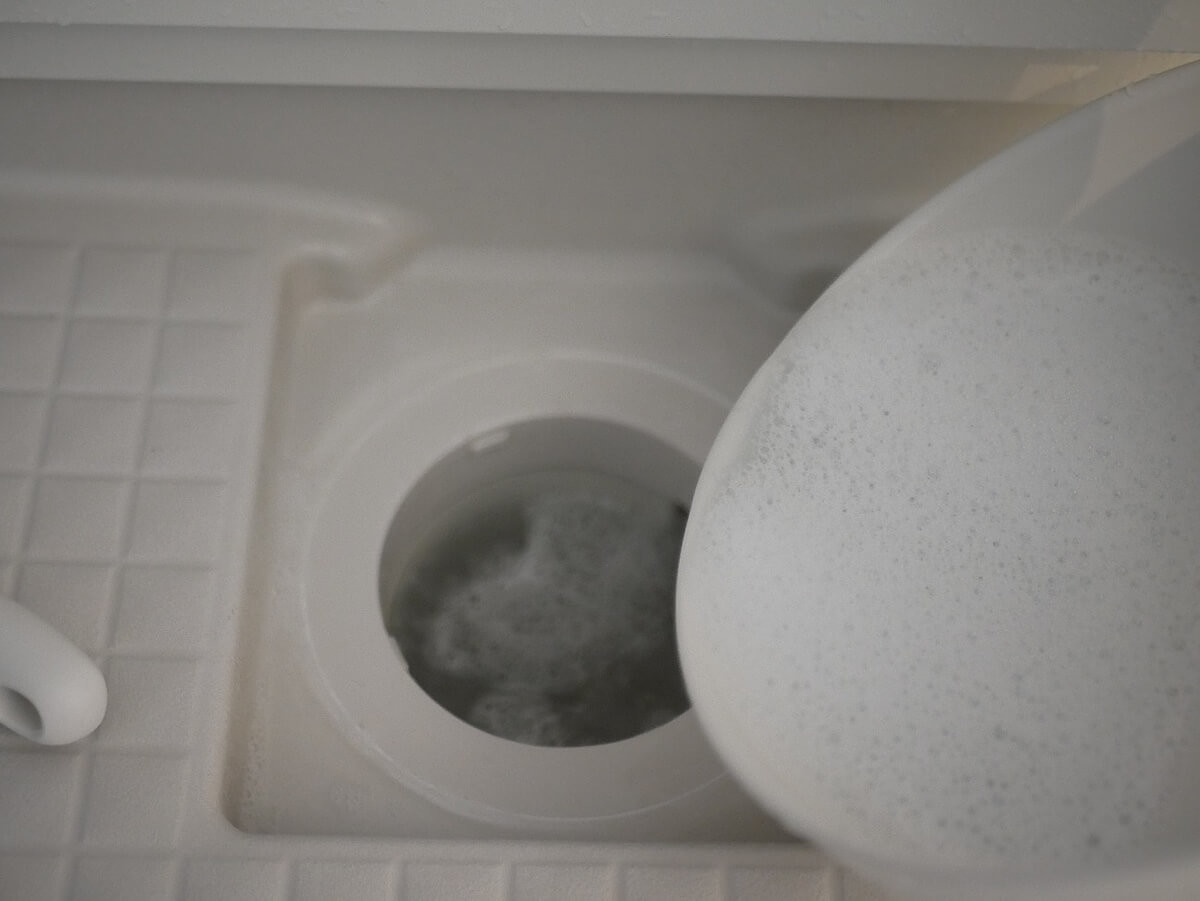 排水口と浴槽が繋がっているこの部分にもオキシクリーンを流し込みます。