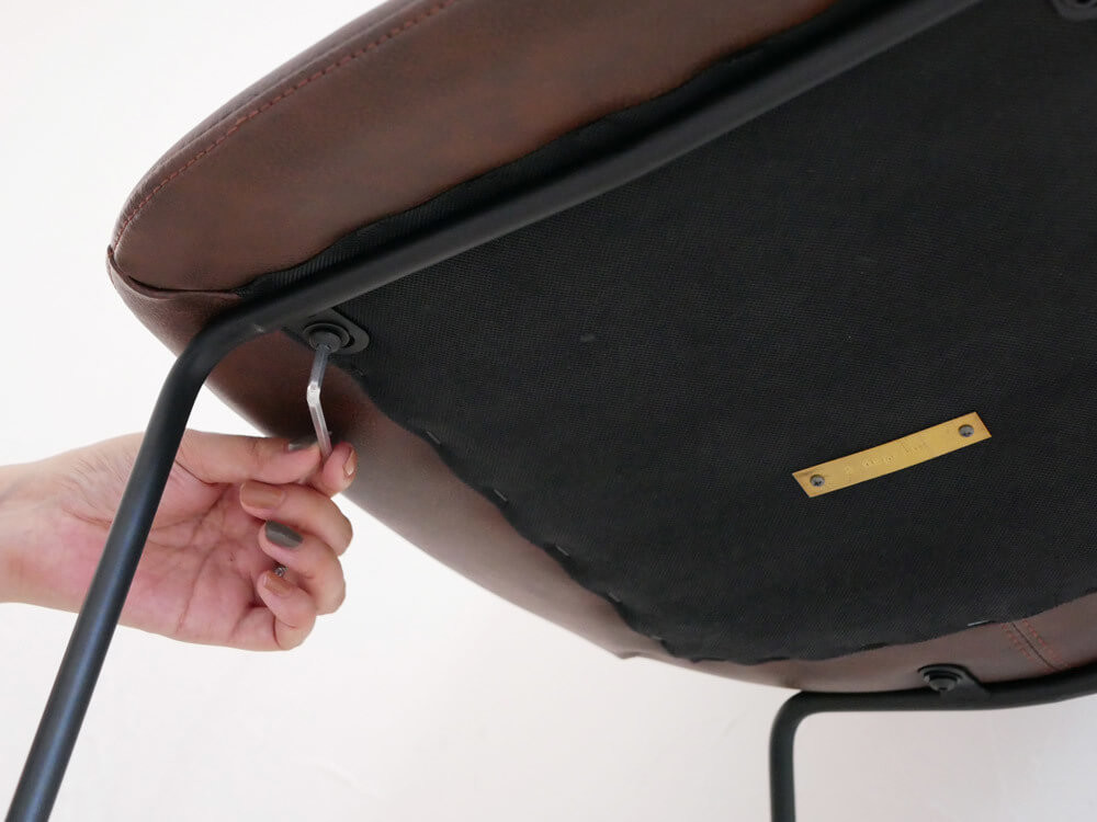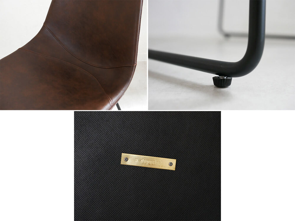 それに、座面裏には「a.depeche 」のゴールドのプレートがヴィンテージ感を味付けしてくれています。