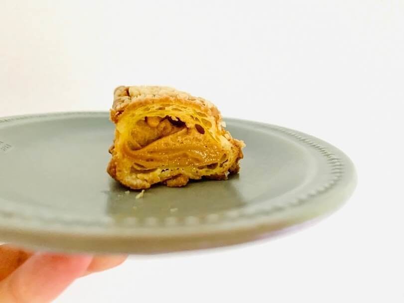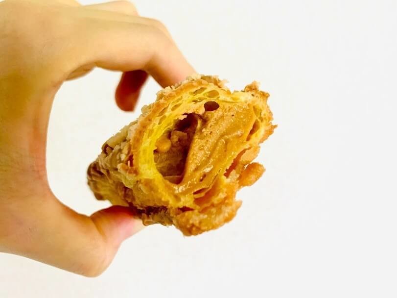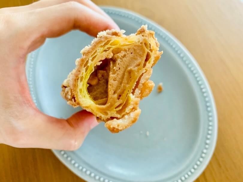 思ったより生地部分は薄く、キャラメルホイップがたっぷり!ふんわり生地の部分は少しパイっぽい感じもします。