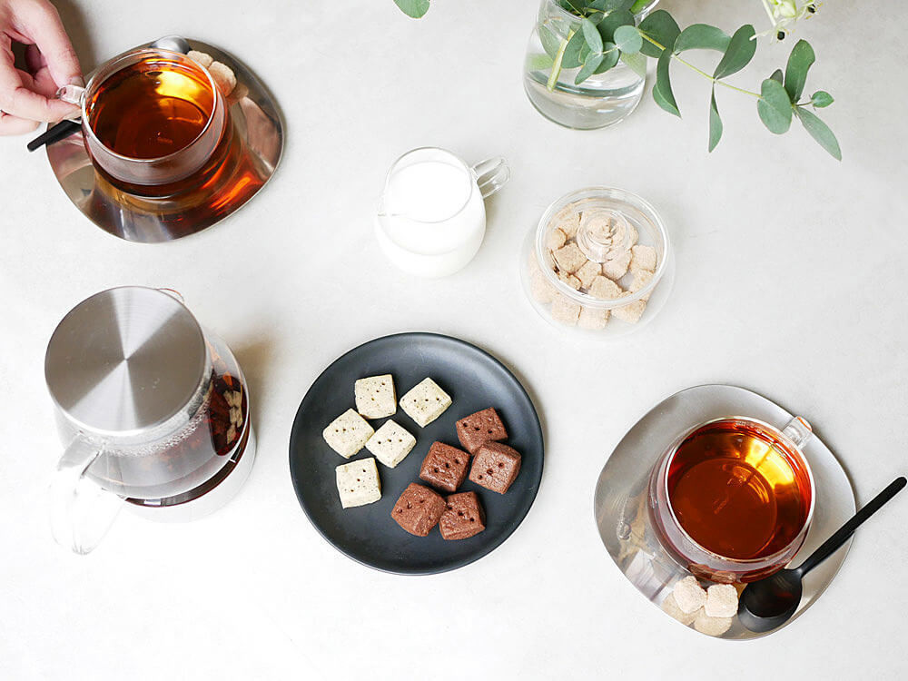 シンプルなガラス製なので、違った素材のティーセットともコーディネートしやすく、カジュアルに取り入れやすいのが◎。