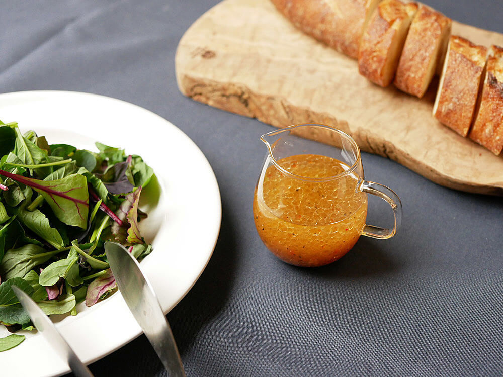 例えば、サラダのドレッシングや、メイン料理のソースなどを入れてテーブルに。おもてなしの席では、市販のボトルのまま出すよりお洒落にコーディネート出来ますよ。