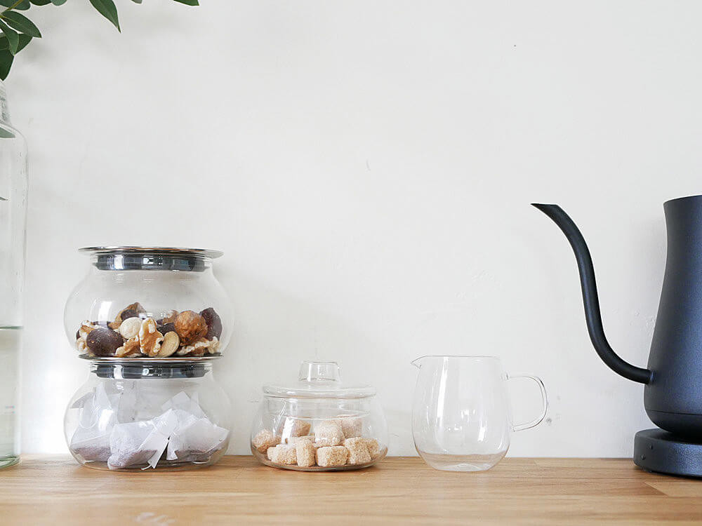 おうち時間や来客時にもセットで揃えておくと見栄えもよく気分も上がるガラスのティーアイテム。