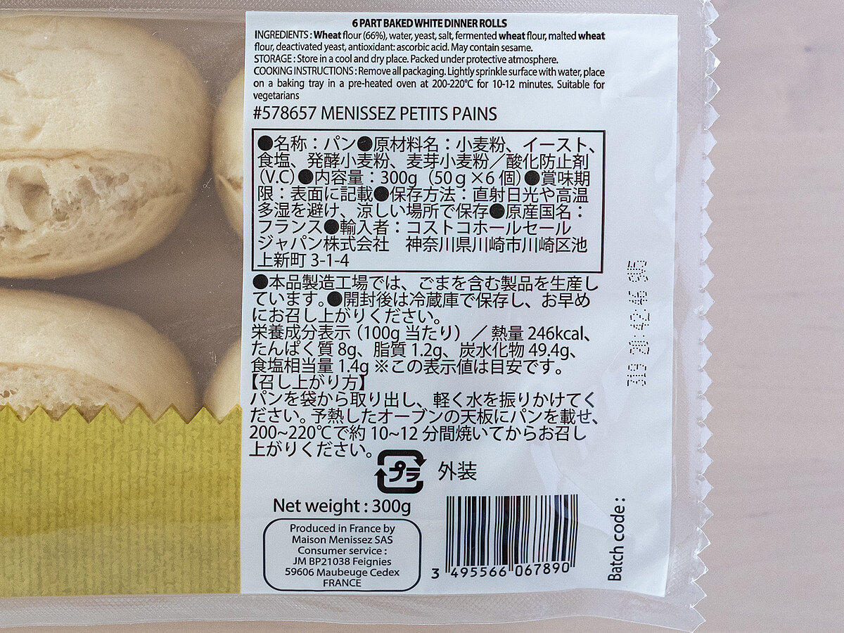 こちらの商品はフランスの「メニセーズ」が製造しているパン。