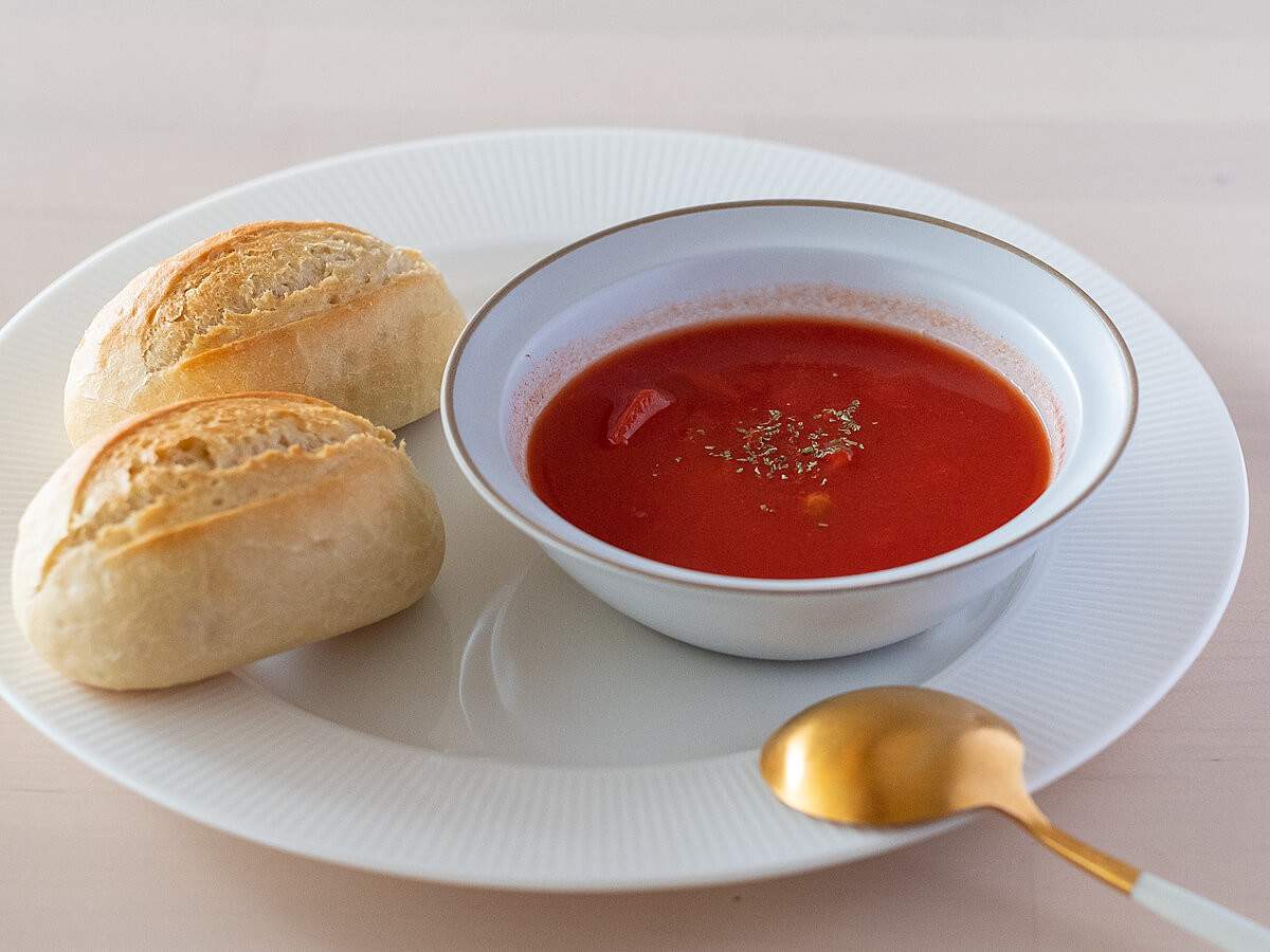 焼きたてのパンにスープを添えるだけで、あっという間に朝食が完成!