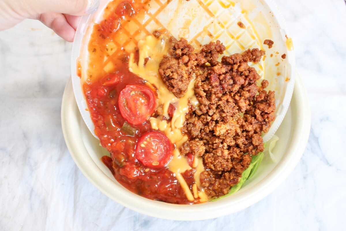 レタスは別添えのおかげでシャキシャキしていて、ソースが絡んだ肉にチーズが入ることによりマイルドになります。
