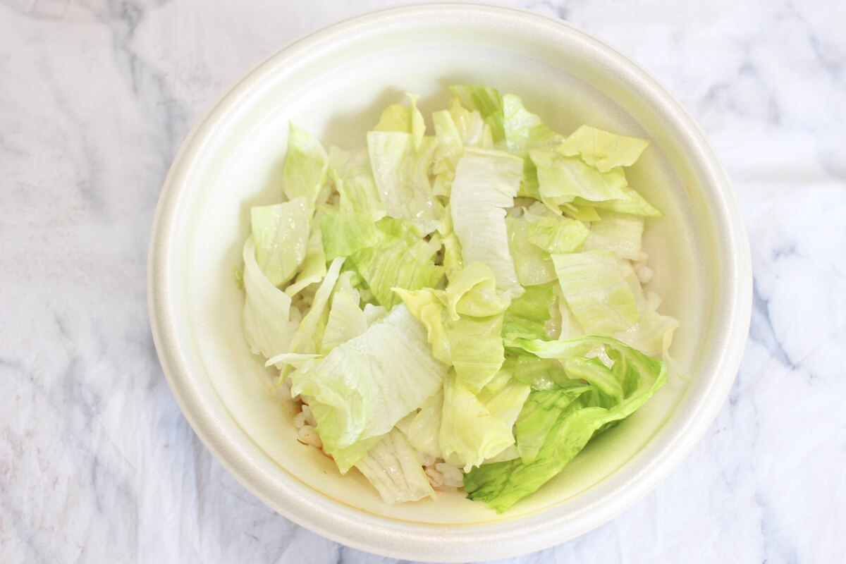 まずはカットレタスを外し、お弁当を記載の時間で温めます。