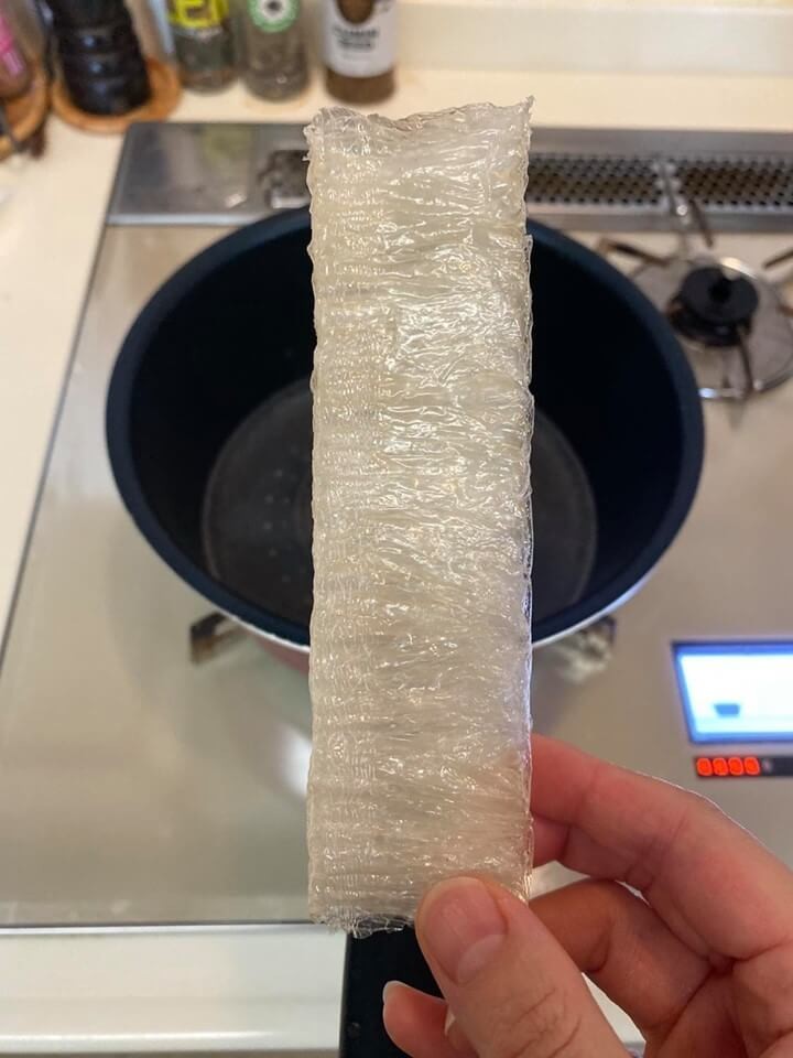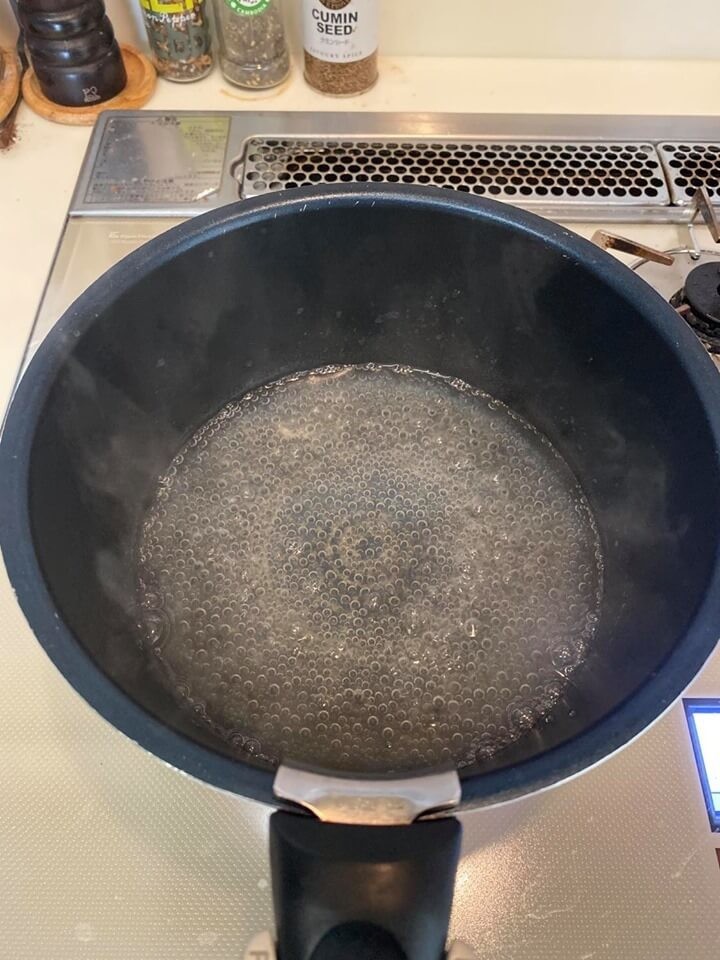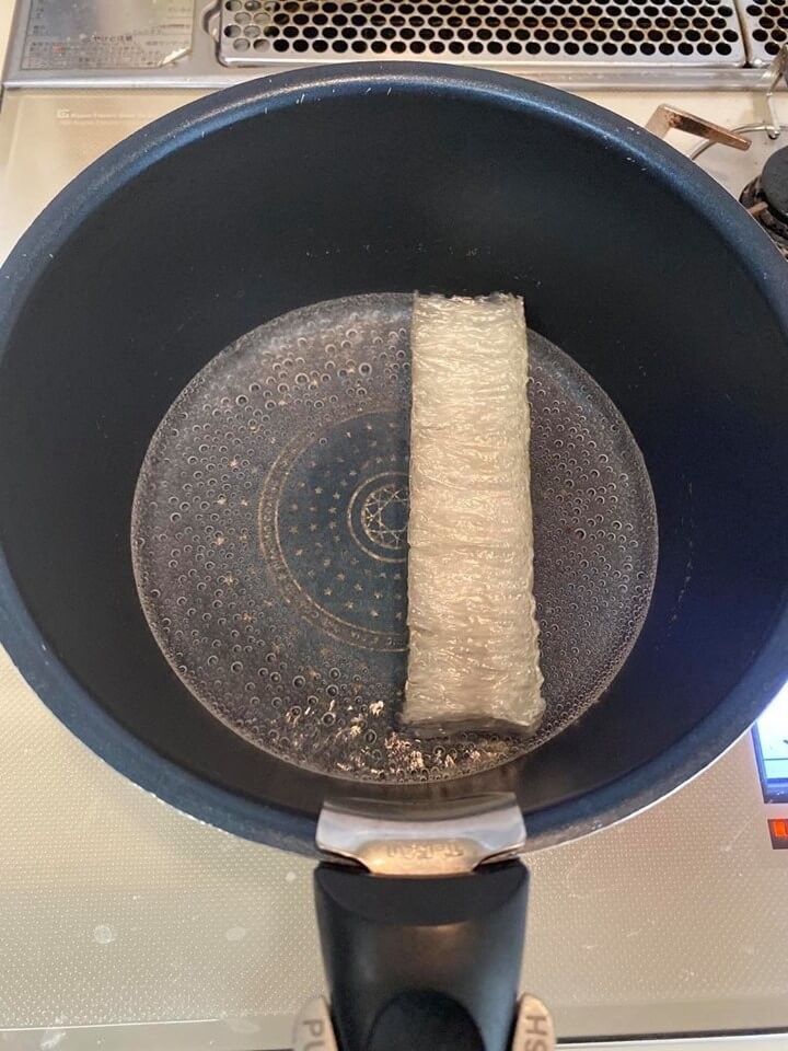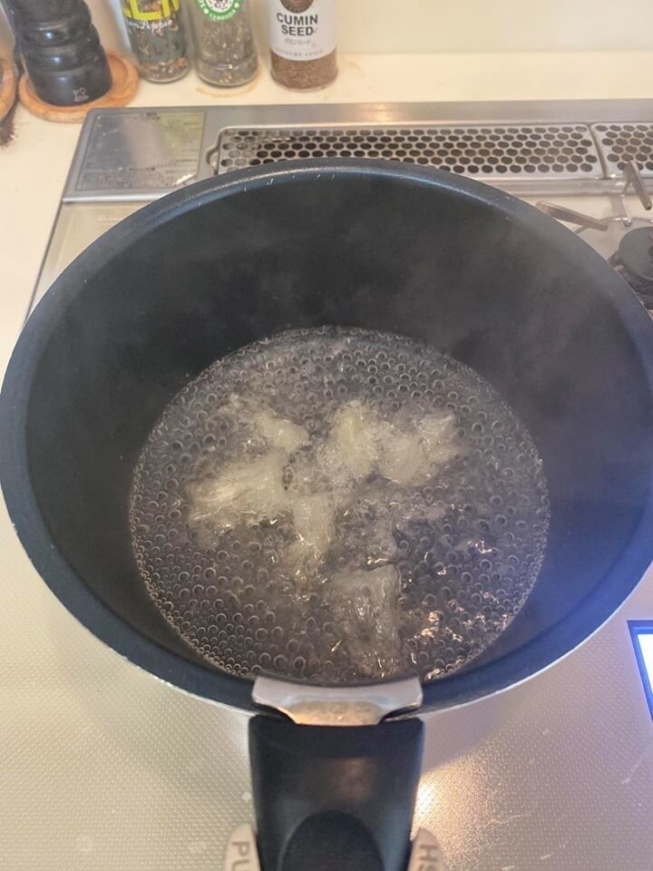 1、鍋で水を沸騰させて、棒寒天を入れて溶かします。