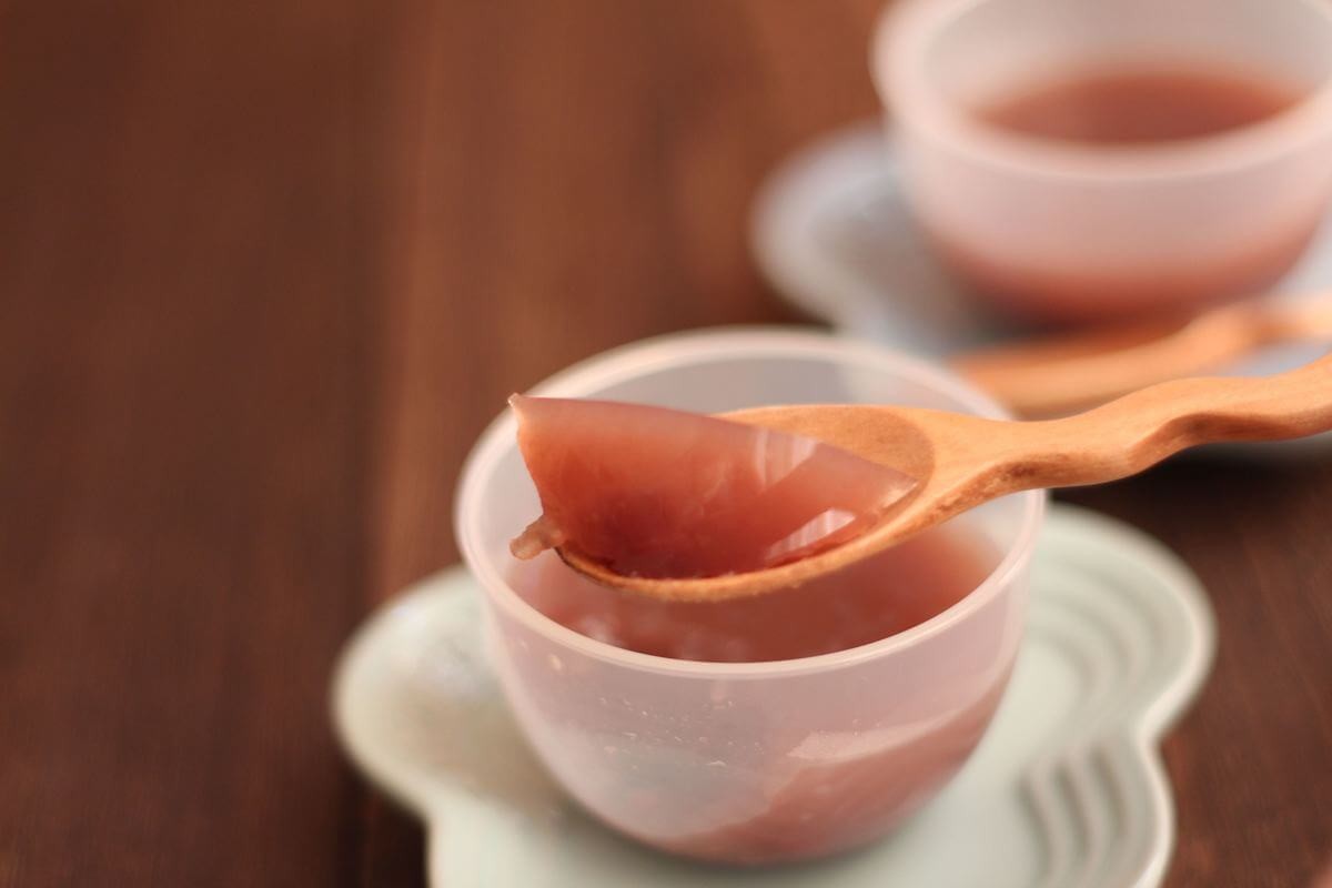 寒天とゆであずきと塩だけで作ったので、甘みもかなり抑えられた ヘルシーデザートに仕上がっていて、おいしいです♡