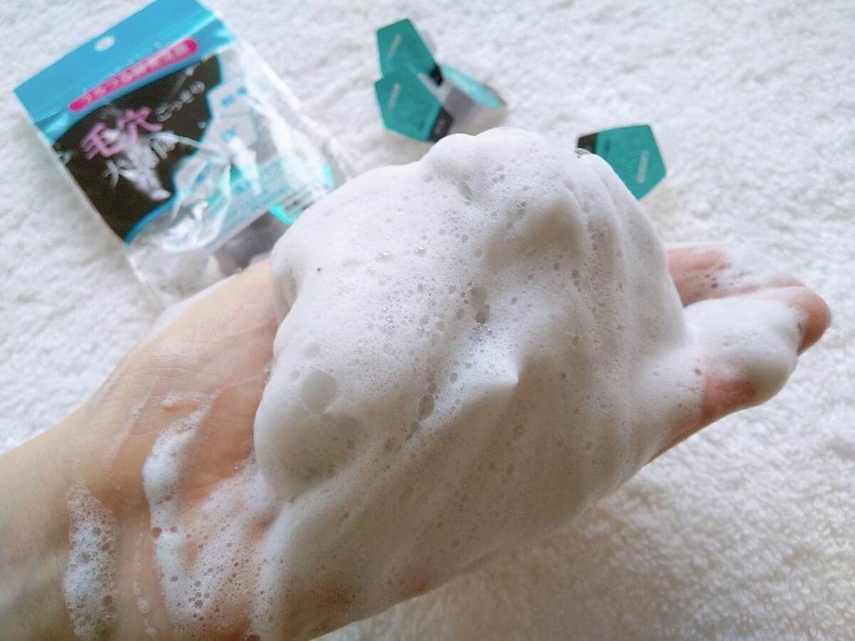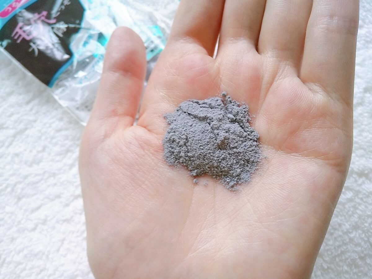 炭や吸着泥が配合されているせいでしょうか、パウダーは黒色。泡も黒っぽい色になります。
