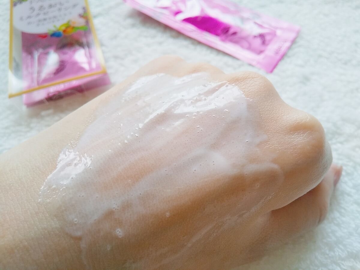 泡立ちは良く、もっちりとした弾力のある泡がたっぷり。ふかふかの泡の力で肌に負担をかけずに洗えますよ。 パウダーを手のひらに出し、少しずつ水を足していくのが良い泡を作るコツ。パウダー洗顔に慣れていない人は泡立て時にパウダーをこぼしやすいので、洗顔ネットの使用をおすすめします。