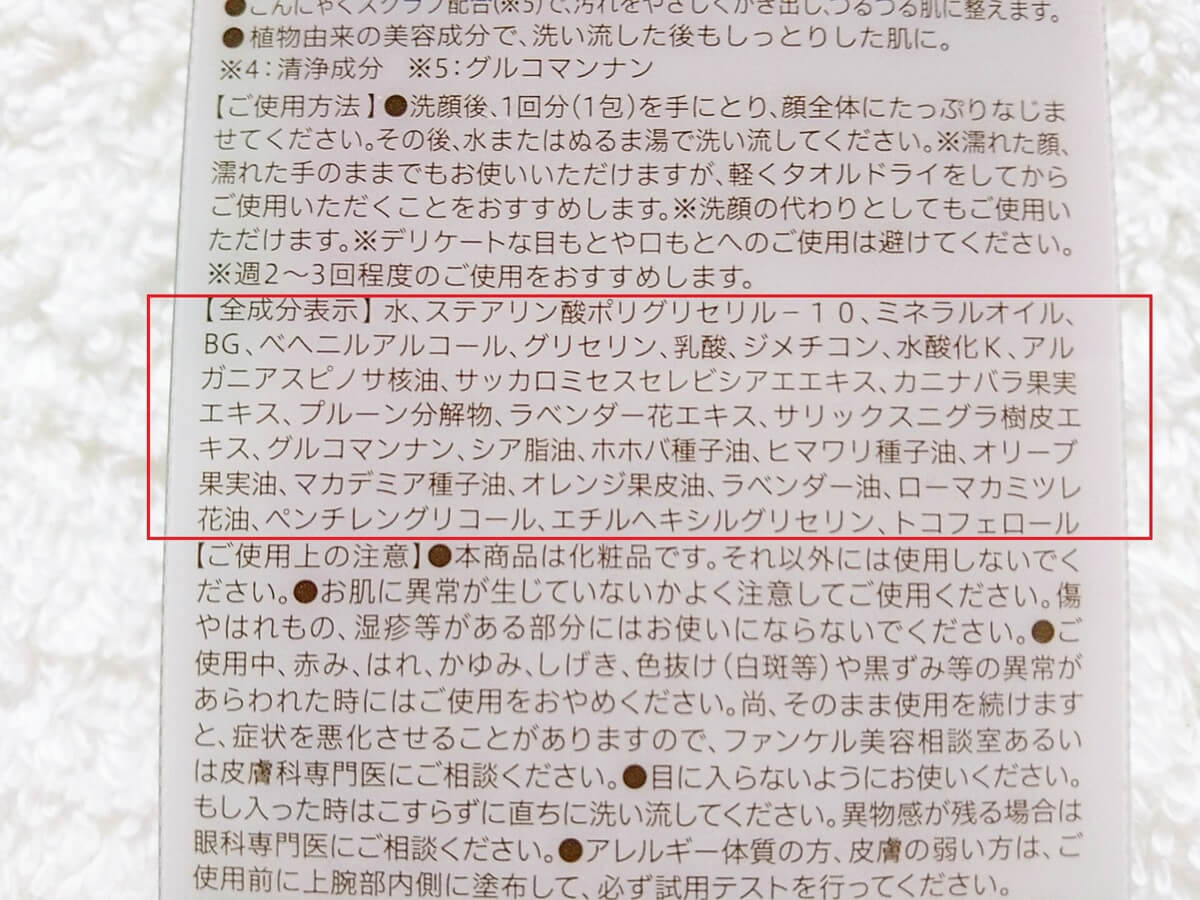 使い方は簡単。1包を顔全体に馴染ませて洗い流したら終了です。