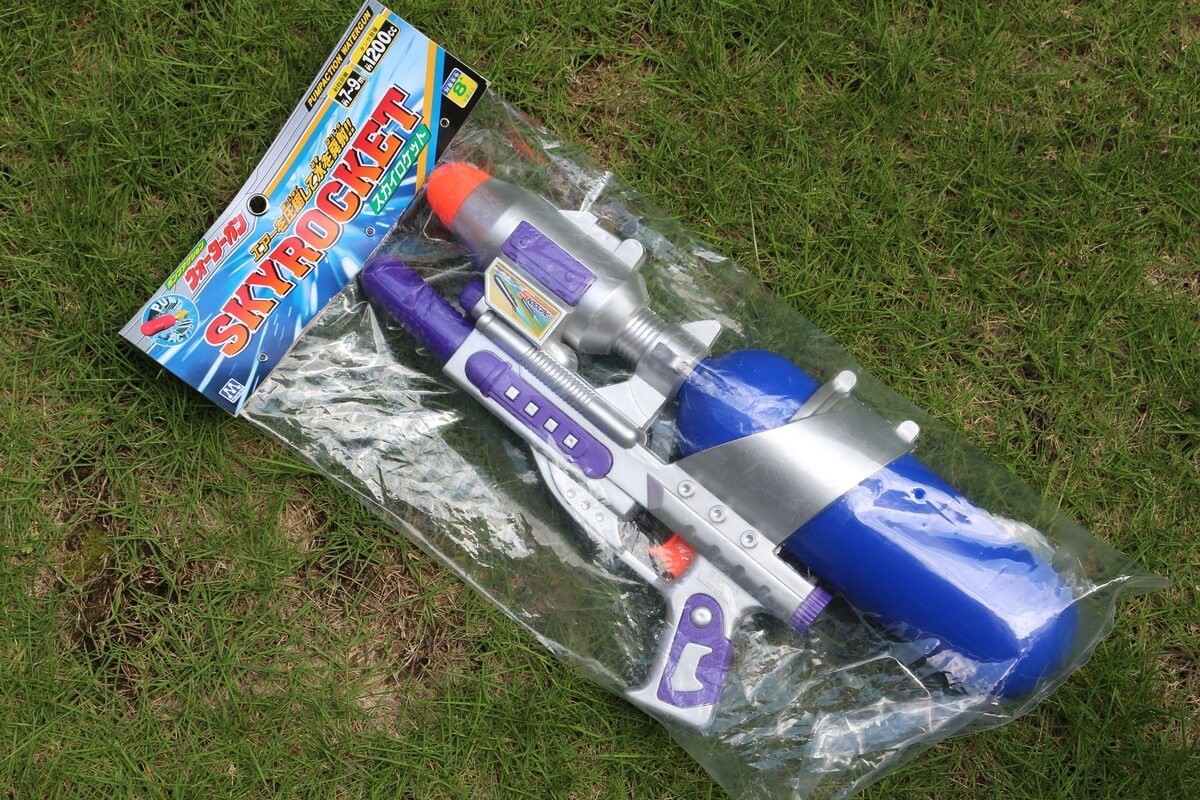 タンクに水を注入して、レバーをシャカシャカ動かして発射できる水鉄砲です。最近の水鉄砲はこの仕様がほんと多い!
