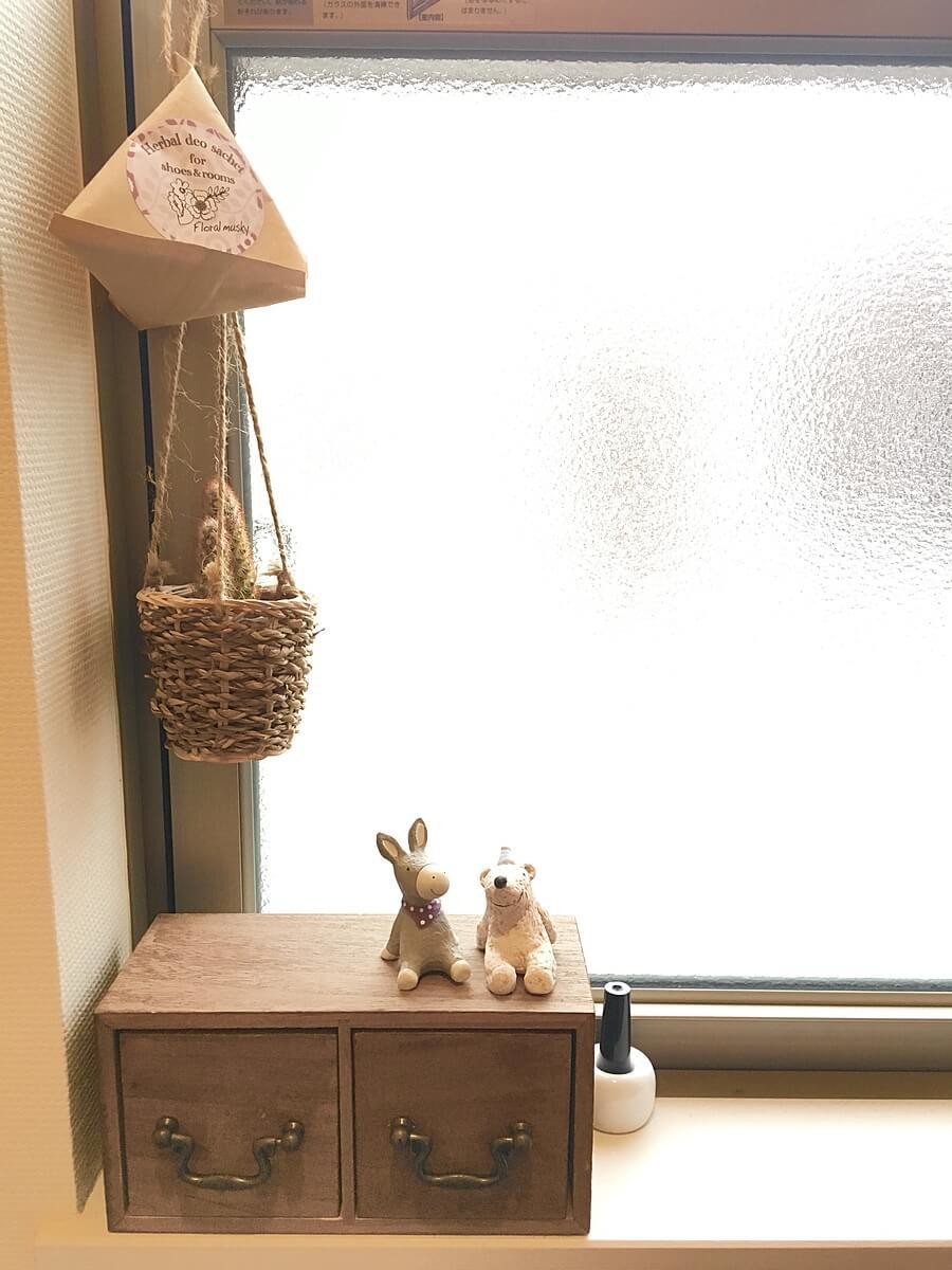 わが家の玄関には棚がないので、唯一物が乗るスペースが、窓枠です。