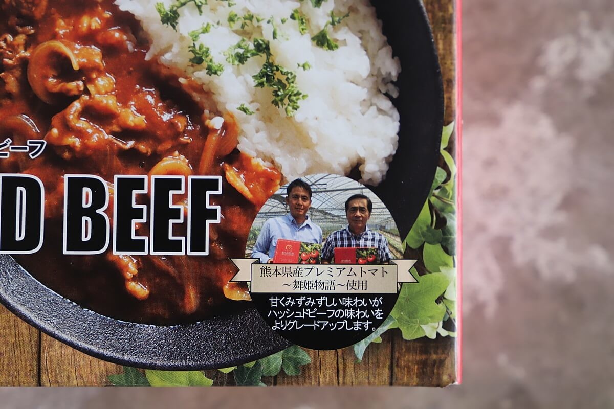 熊本県産のプレミアムトマト「舞姫物語」を使用することで、ハッシュドビーフの味わいをよりグレードアップさせている、とあります。