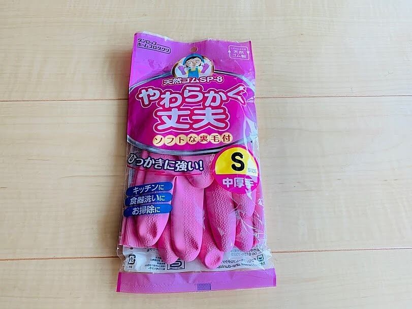 こちらは食器洗いのときなどに必須のゴム手袋です。なんと製造元はあのタイヤで有名なダンロップ。ゴムのプロが作るので品質は間違いなさそうですね!