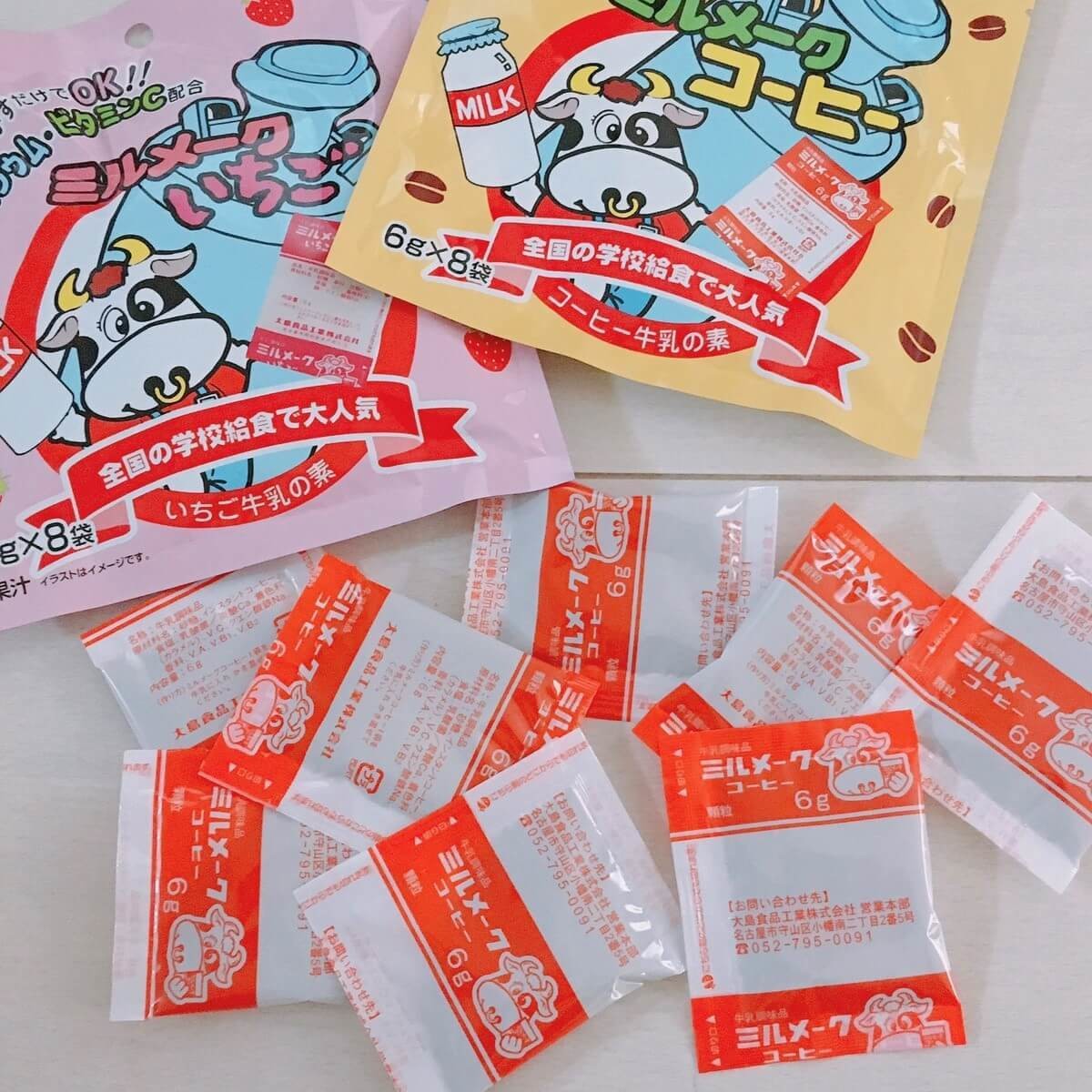 好きな味のミルメークをいつもの牛乳に溶かすだけで、コーヒーやいちご牛乳、バナナミルクが飲めるので、子どものテンションも高まりますよ!