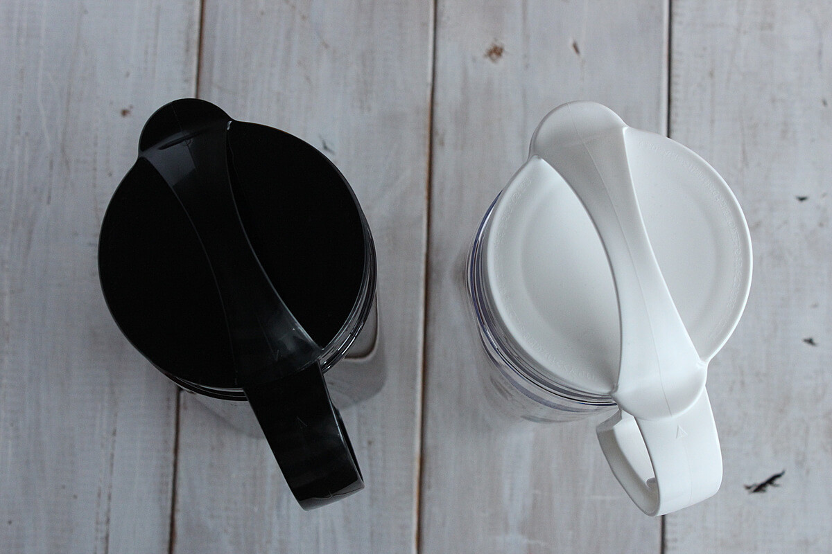 左の黒いものが1年以上使用しているカインズの冷水筒で、つばが1つしかありませんね。