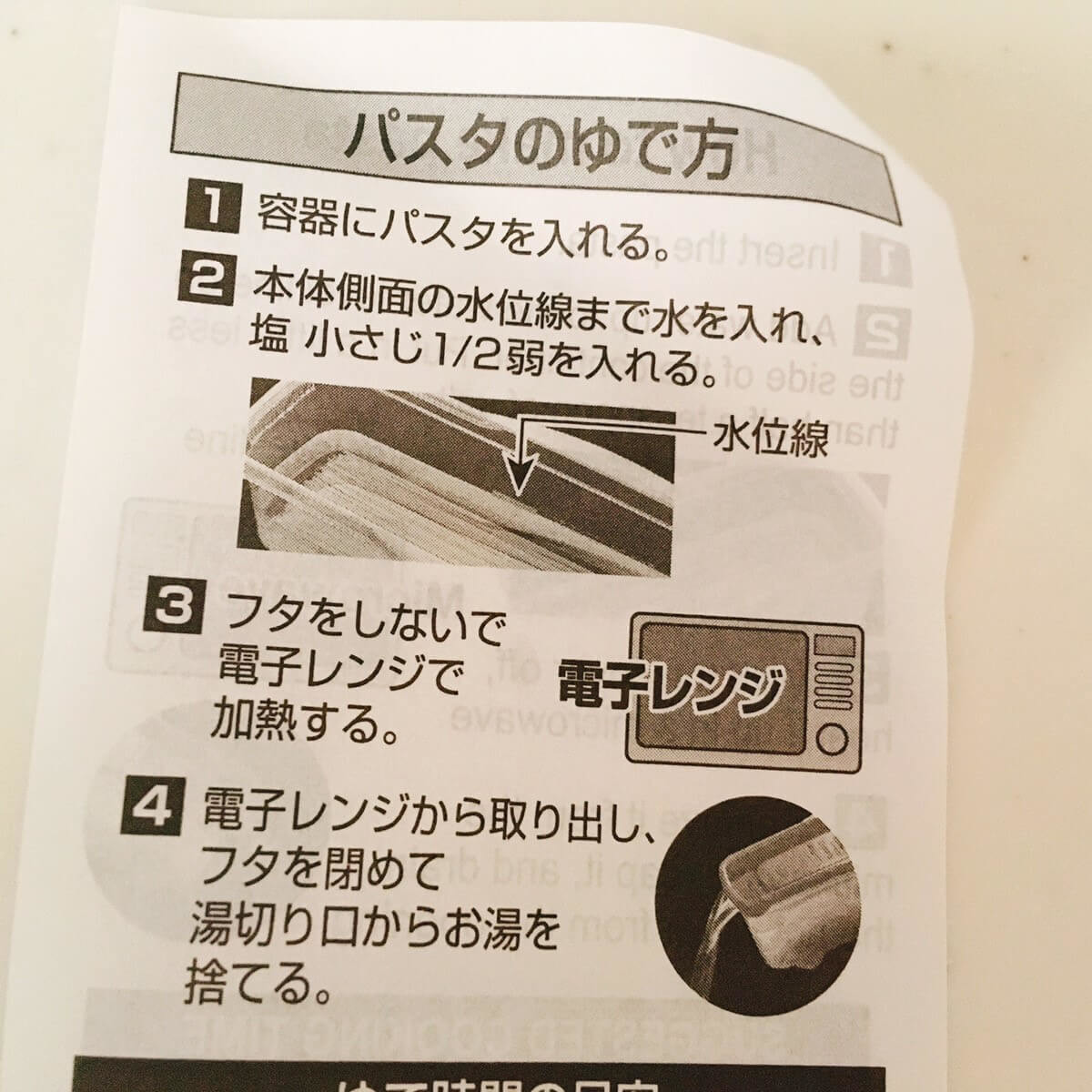 パスタの作り方も、ちゃんと説明書が付いています。