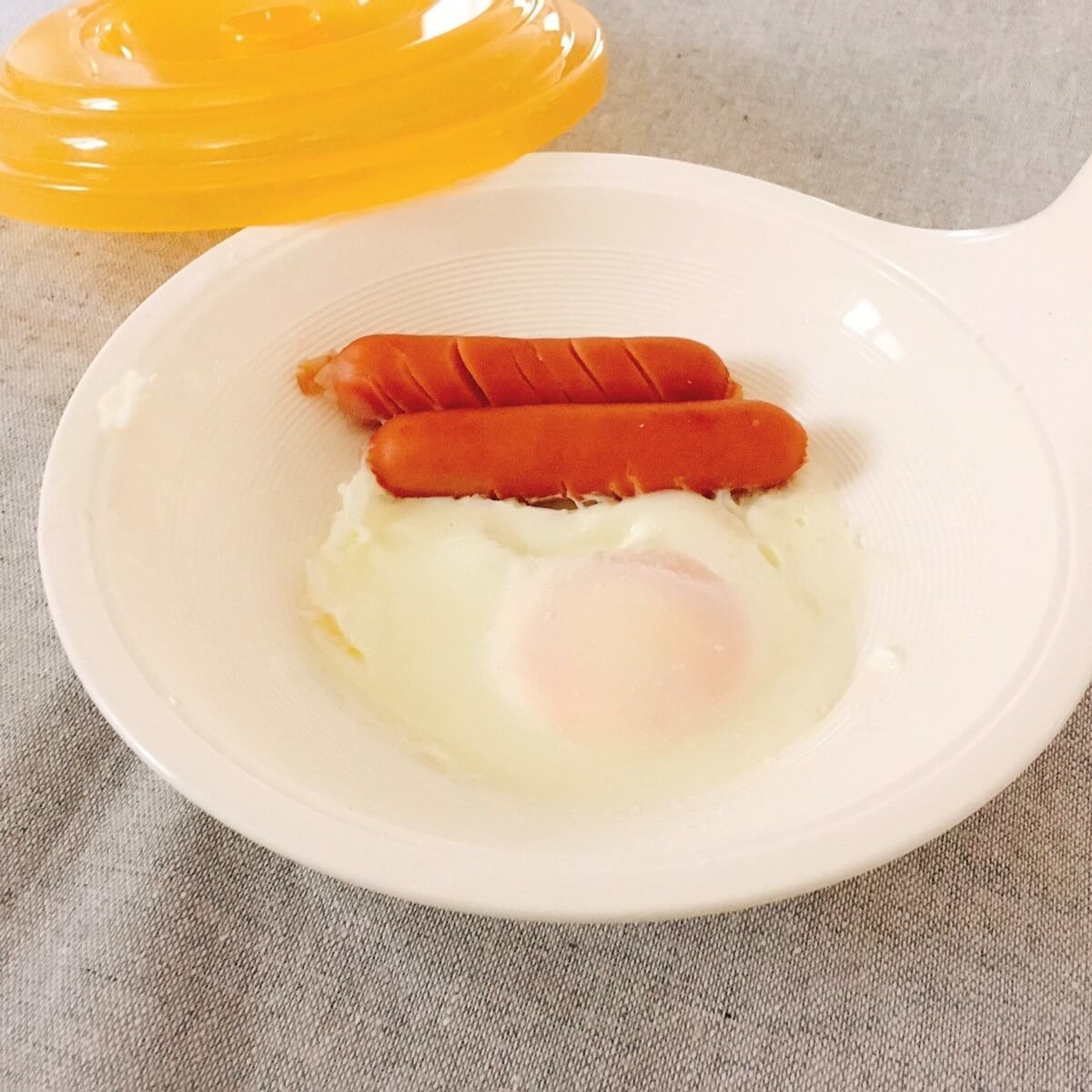 焼き目もつかず、硬くないので、子どもたちも私がフライパンで焼いたものより、レンチン目玉焼きの方が喜びます(笑)