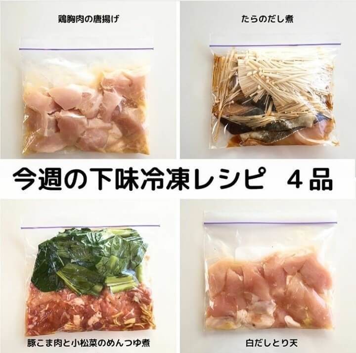 「週2回のまとめ買い食材で作り置きおかずを作っています。下味冷凍を保存するのに使っているのが『冷凍用フリーザーバッグMサイズ(25枚入り)』。サイズ感もちょうどよく、水分がもれることもないので重宝しています。100円で25枚入っているのでありがたい!」@minimal000さん(夫、長男2歳の3人家族)