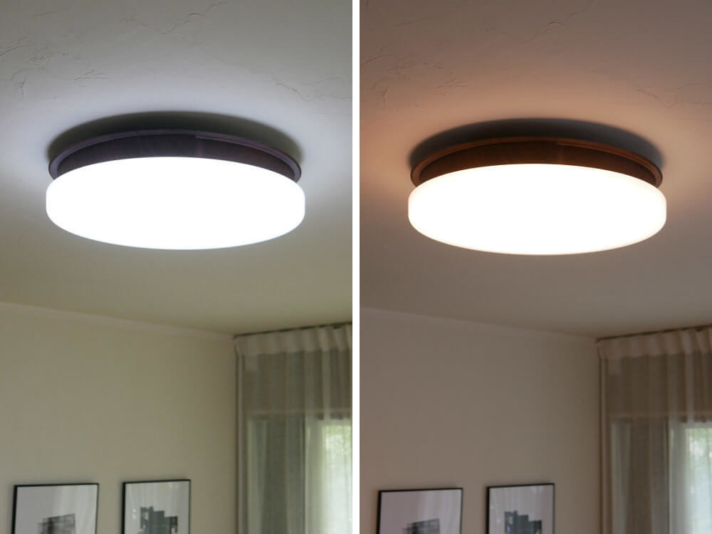 家族団らんや本を読む時は昼白色、家族がくつろぐ時間や映画を観る時は温かな電球色にしたりと、生活シーンに合わせて光を演出できます。