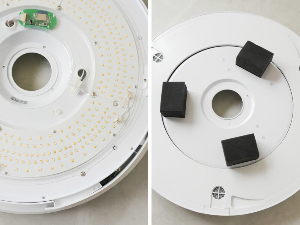 また、天井接地面の緩衝材のスポンジが本体の振動や回転を防ぎます。