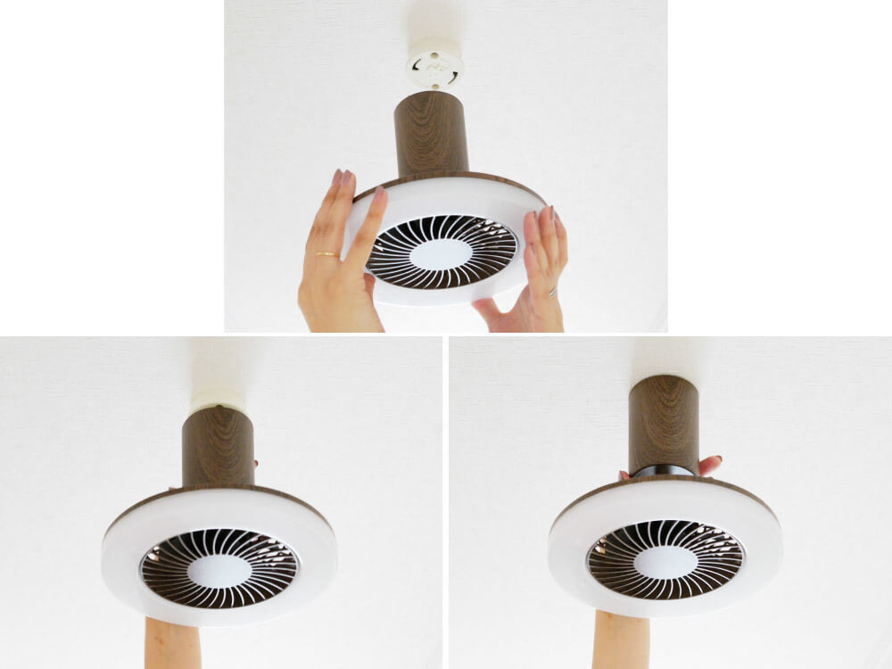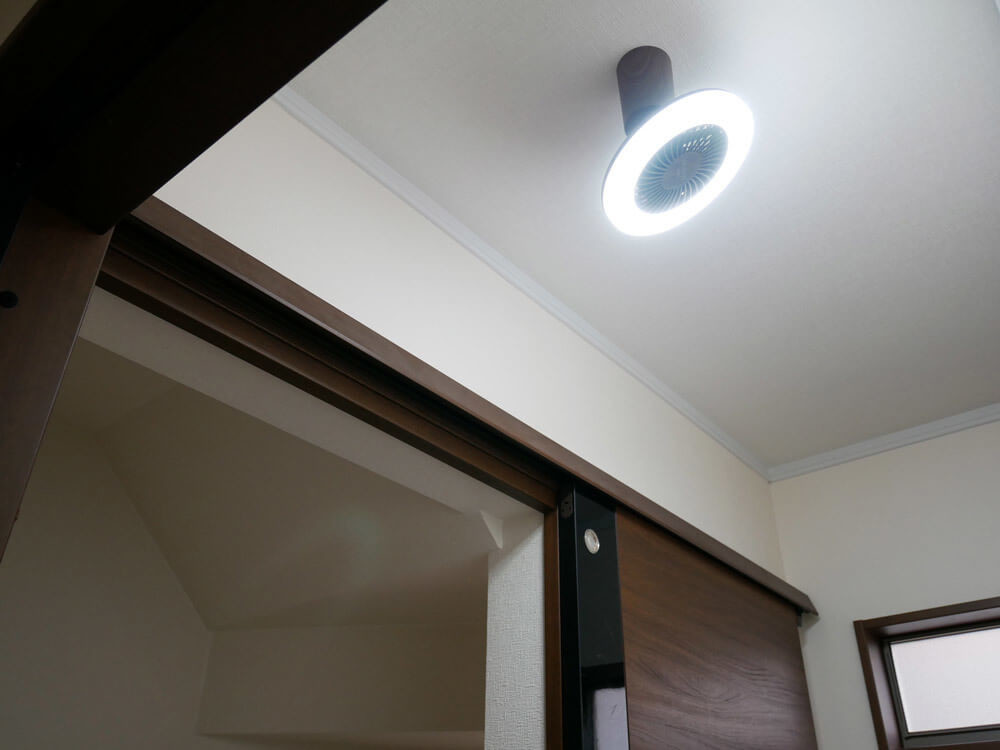 天井の引っ掛けシーリングに簡単取付。ウォークインクローゼット、トイレ、洗面室、内玄関などの風が通りにくい場所に“灯り”と“風”を送ります。