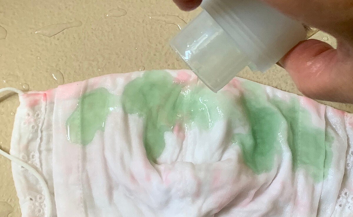 ※塩素系漂白剤で漂白した直後の場合は、まず水で充分にすすぎ、軽くしぼってから塗布してください。