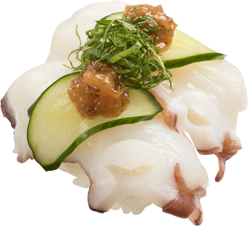 今年の1月に販売された際は約80万食販売し、大好評!かつお節、煮きり酒を紀州南高梅に合わせたまろやかな梅肉と塩もみした食感の良いきゅうり、そして刻んだ大葉が、生たこと絶妙に絡んでマッチする上品な創作すしです。