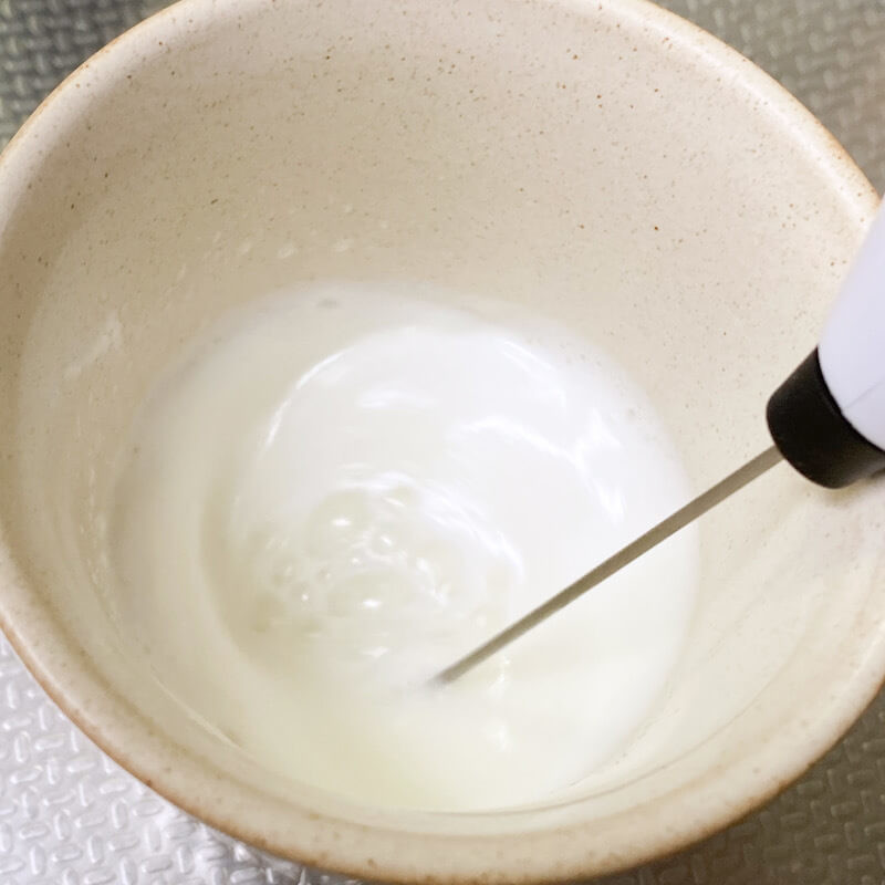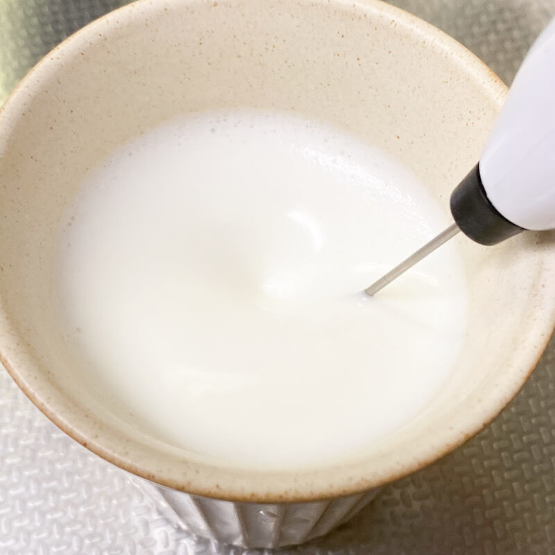 牛乳のあたたかさは、多少ぬるめでも問題ありませんでしたが、各自調整してください。