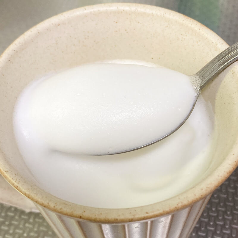 スプーンですくっても弾力がわかるほど、もっちりとしたフォームミルクができました!
