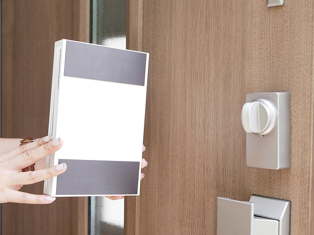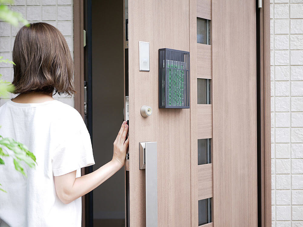 玄関扉についていても気にならないシンプルなスクエアフォルム。 カラーはホワイトとブラックの2種類あります。