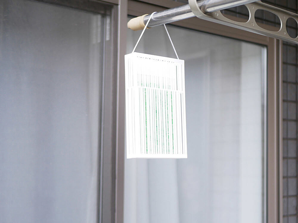 付属の紐を使えば、物干し竿などマグネットで取り付けられない場所にも設置可能。 ベランダ周りの虫除けには吊り下げが便利ですね。